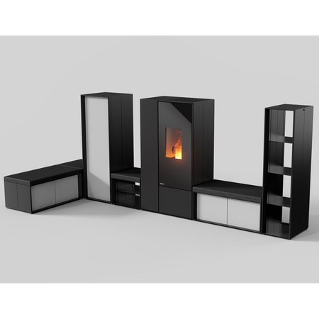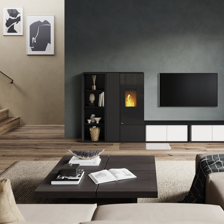 De verschillende vormen en kenmerken, materialen en oppervlakken van de afzonderlijke kachelmodules maken een holistische woonkamerinrichting mogelijk die het gezellige vuur nog meer centraliseert.